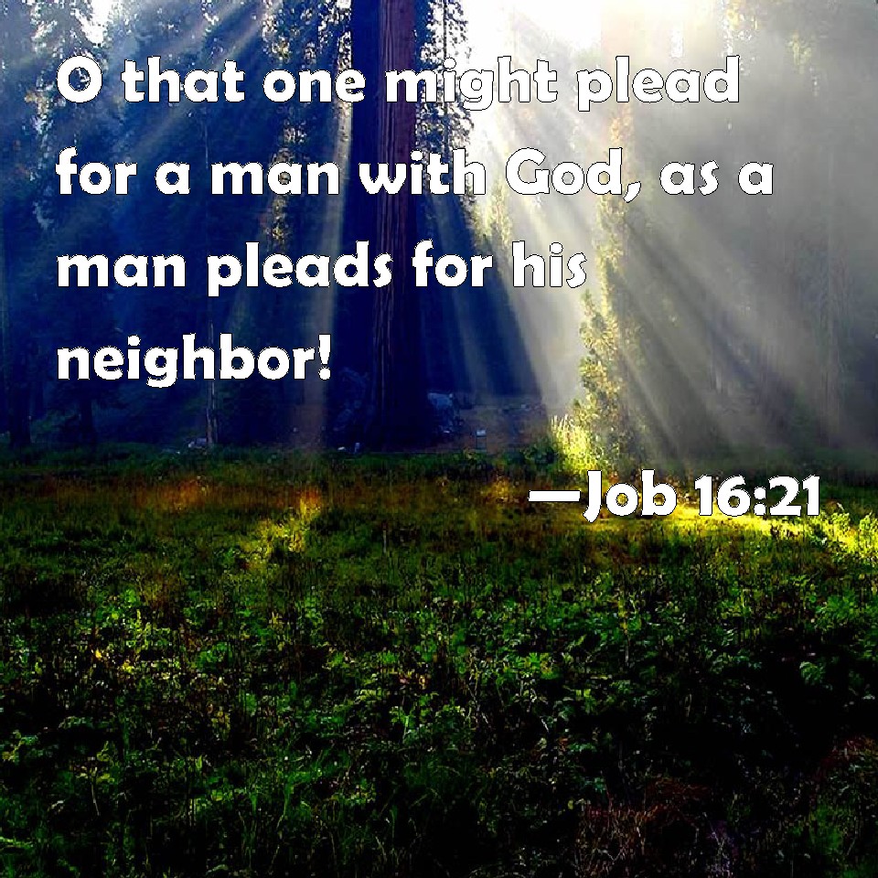 Job 16:21 O that one might plead for a man with God, as a man pleads for his neighbor!