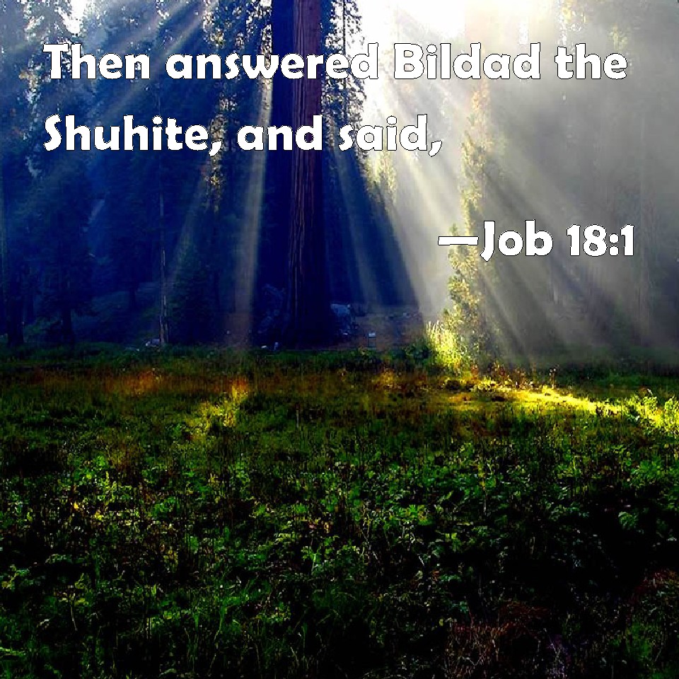 Choose a Background Job 18:1 Then answered Bildad the Shuhite, and said, KJV: Then answered Bildad the Shuhite, and said, DRB: Then Baldad the Suhite answered, and said: DBT: And Bildad the Shuhite answered and said, ERV: Then answered Bildad the Shuhite, and said, WBT: Then answered Bildad the Shuhite, and said, WEB: Then Bildad the Shuhite answered, YLT: And Bildad the Shuhite answereth and saith: — Links Job 18:1 NIV • Job 18:1 NLT • Job 18:1 ESV • Job 18:1 NASB • Job 18:1 KJV • Job 18:1 Interlinear • Job 18:1 Commentaries • Job 18:1 Parallel Texts • Job 18:1 Bible Apps • Job 18:1 Parallel • Bible Hub |