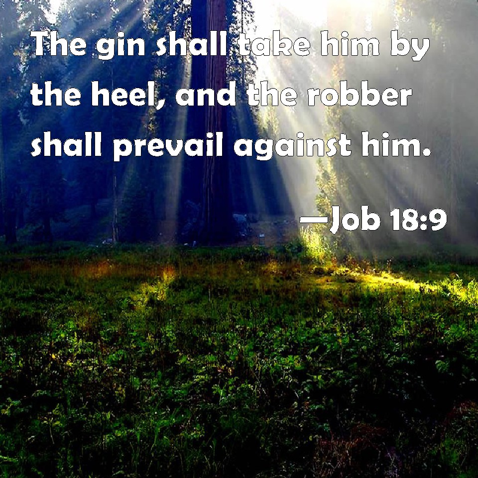 Job 18:9 The gin shall take him by the heel, and the robber shall prevail against him.