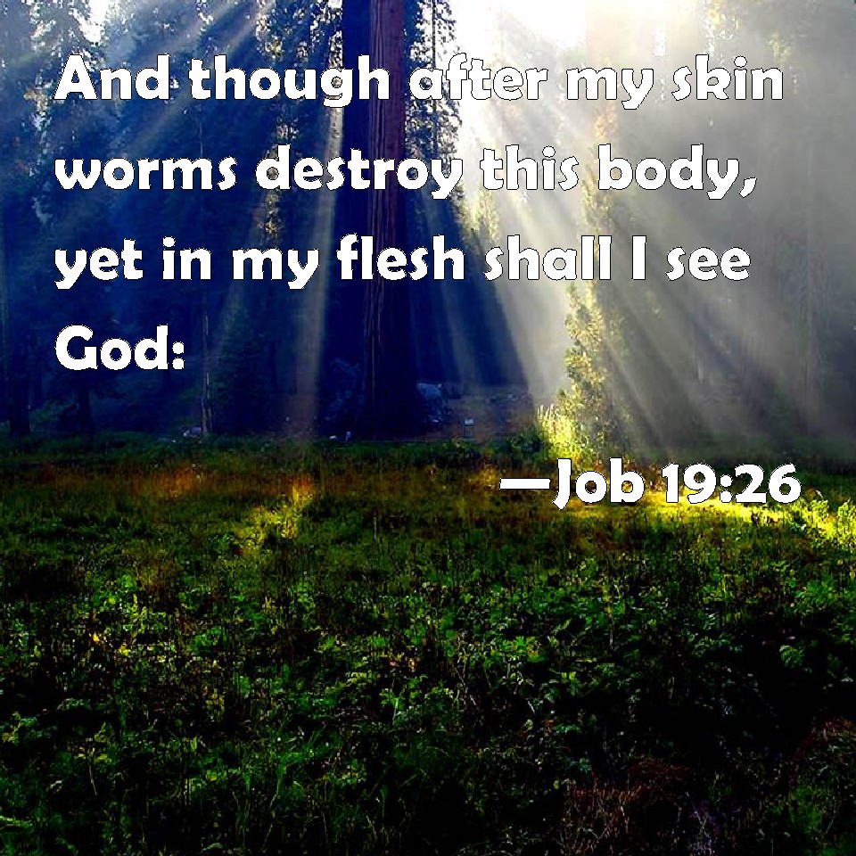 Job 19:26 And though after my skin worms destroy this body, yet in my flesh shall I see God: