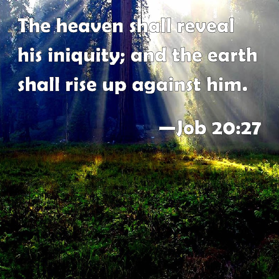 Job 20:27 The heaven shall reveal his iniquity; and the earth shall rise up against him.