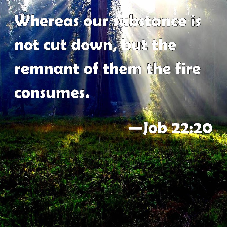 Job 22:20 Whereas our substance is not cut down, but the remnant of them the fire consumes.