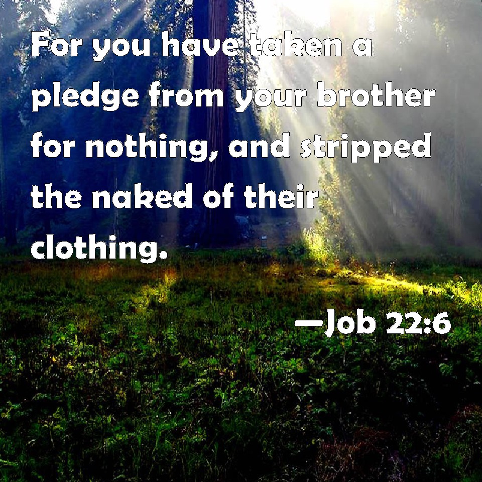 Job 22:6 For you have taken a pledge from your brother for nothing, and stripped the naked of their clothing.