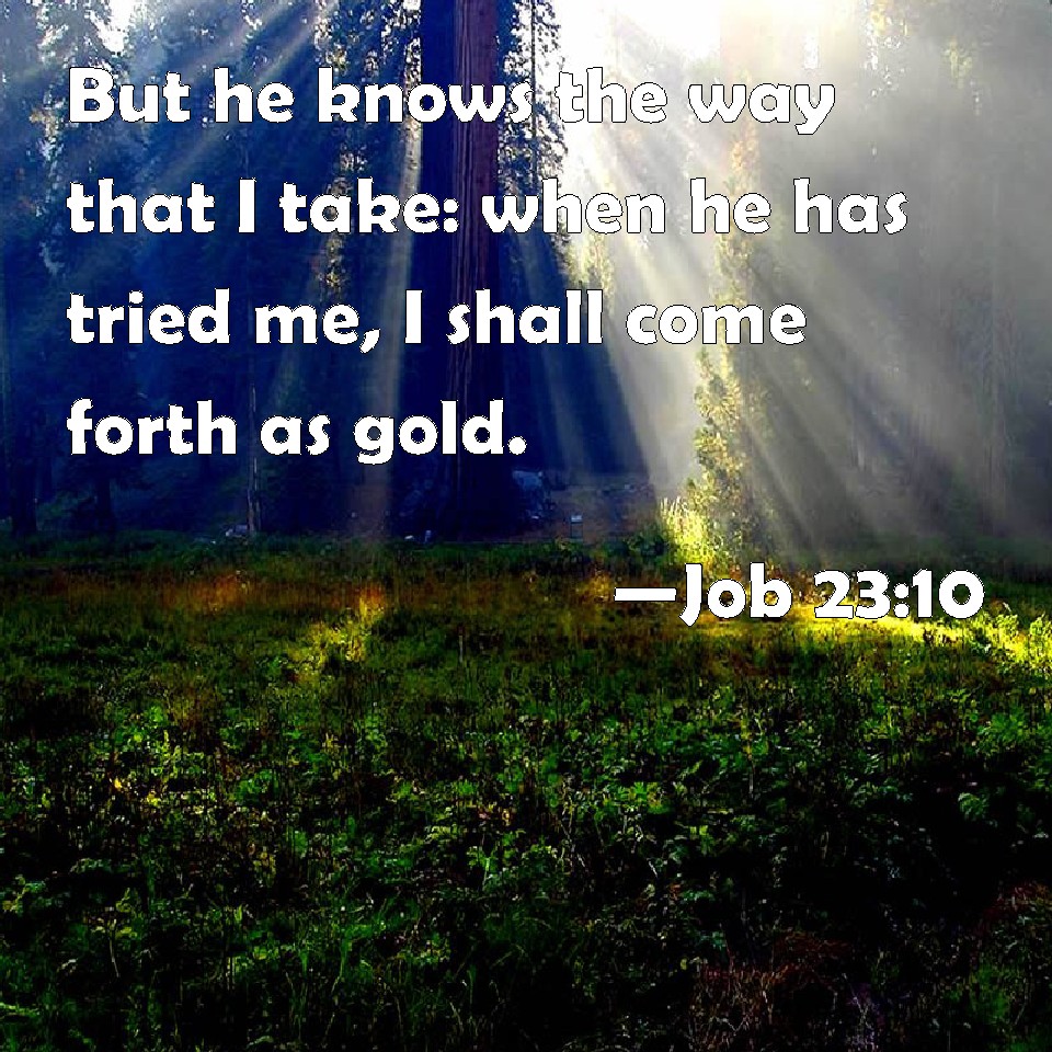 Job 23:10 But he knows the way that I take: when he has tried me, I shall come forth as gold.
