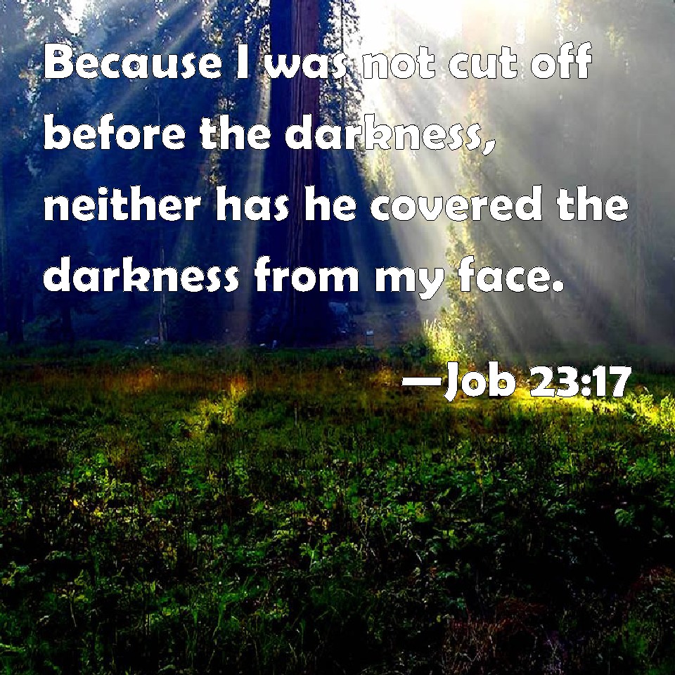 Job 23:17 Because I was not cut off before the darkness, neither has he covered the darkness from my face.