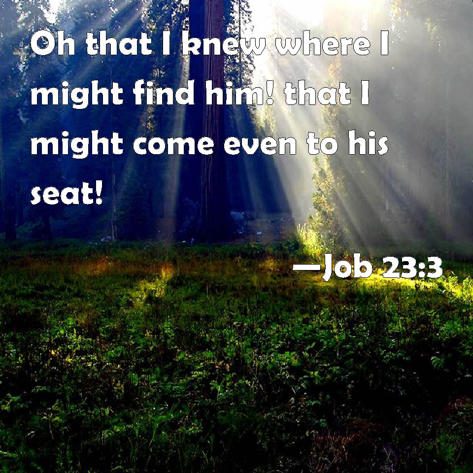 Job 23:3 Oh that I knew where I might find him! that I might come even to his seat!