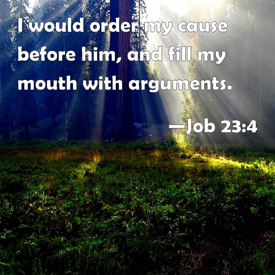 Job 23:4 I would order my cause before him, and fill my mouth with arguments.