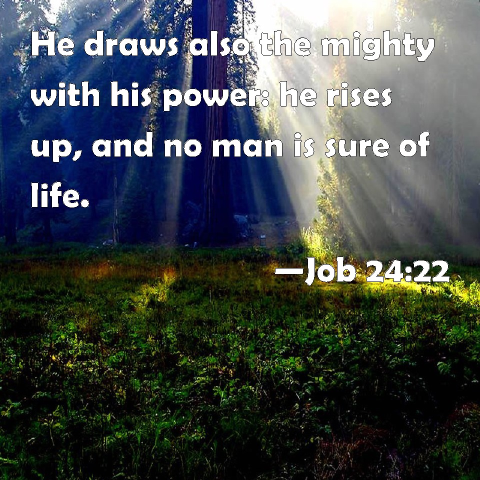 Job 24:22 He draws also the mighty with his power: he rises up, and no man is sure of life.