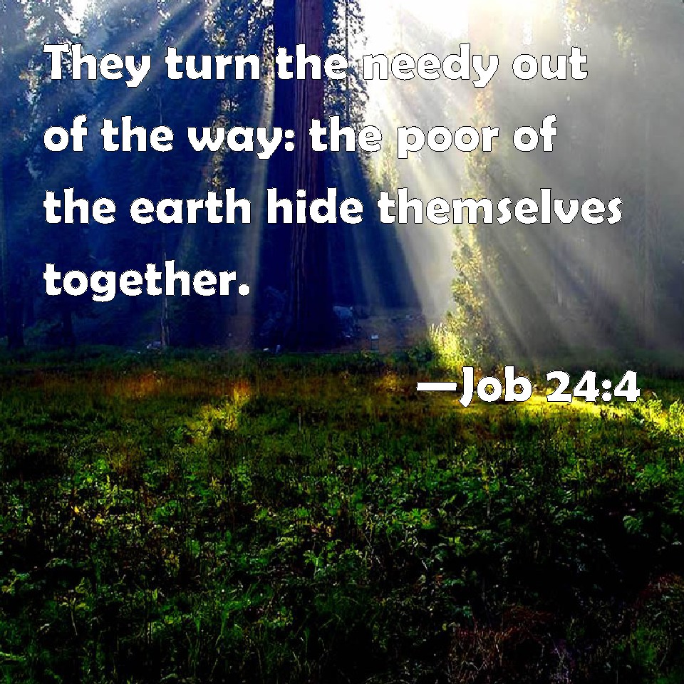 Job 24:4 They turn the needy out of the way: the poor of the earth hide themselves together.
