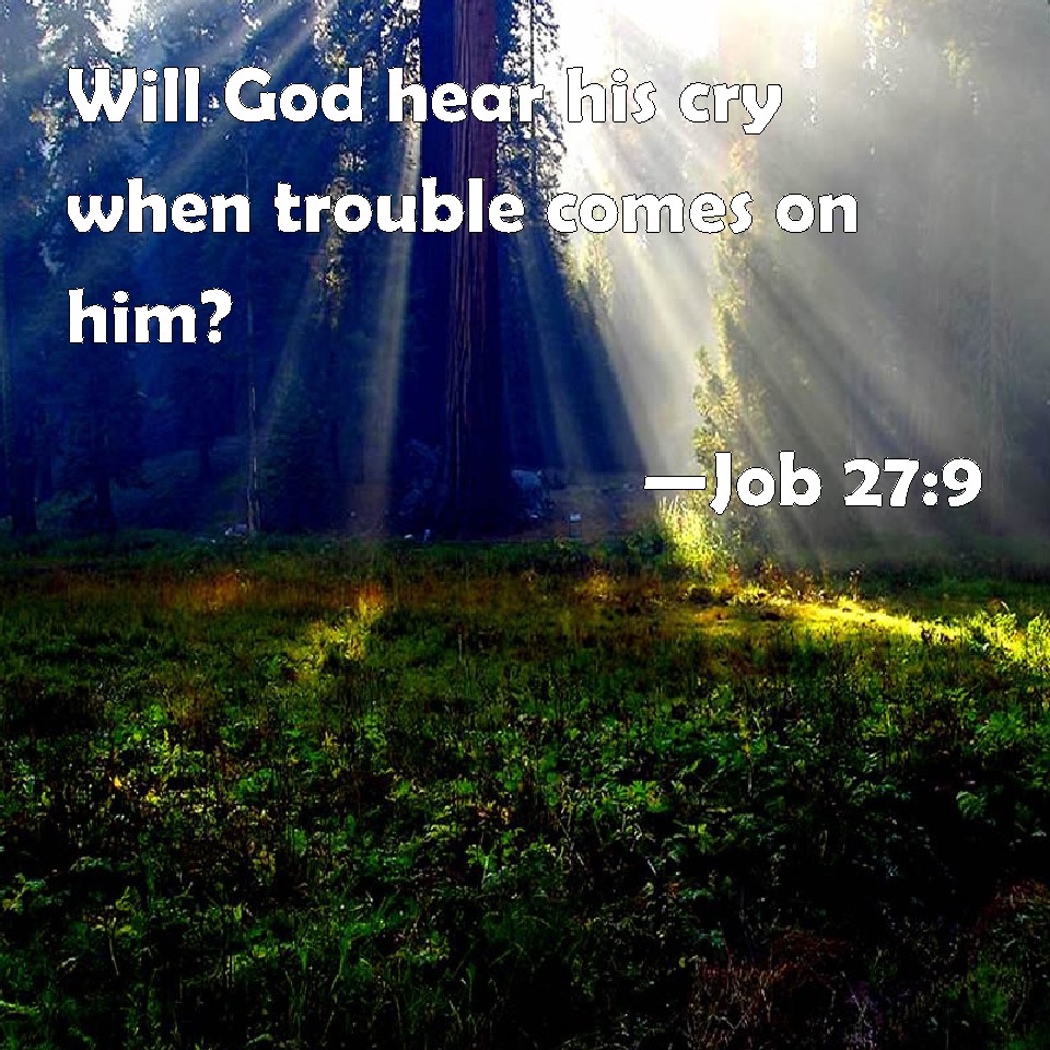 Job 27:9 Will God hear his cry when trouble comes on him?