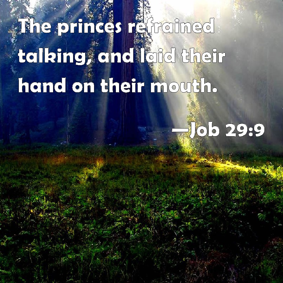 Job 29:9 The princes refrained talking, and laid their hand on their mouth.