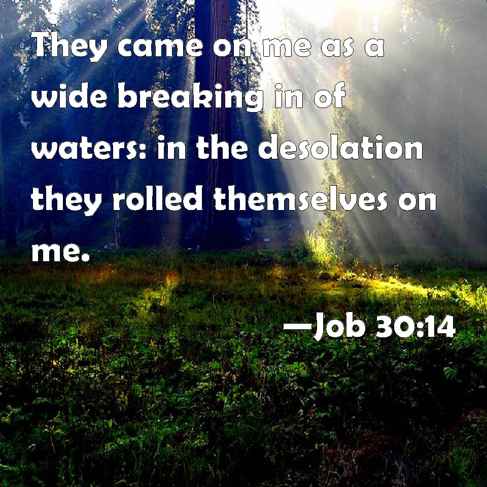 Job 30:14 They came on me as a wide breaking in of waters: in the desolation they rolled themselves on me.