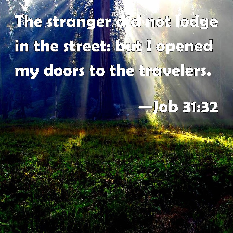 Job 31:32 The stranger did not lodge in the street: but I opened my doors to the travelers.