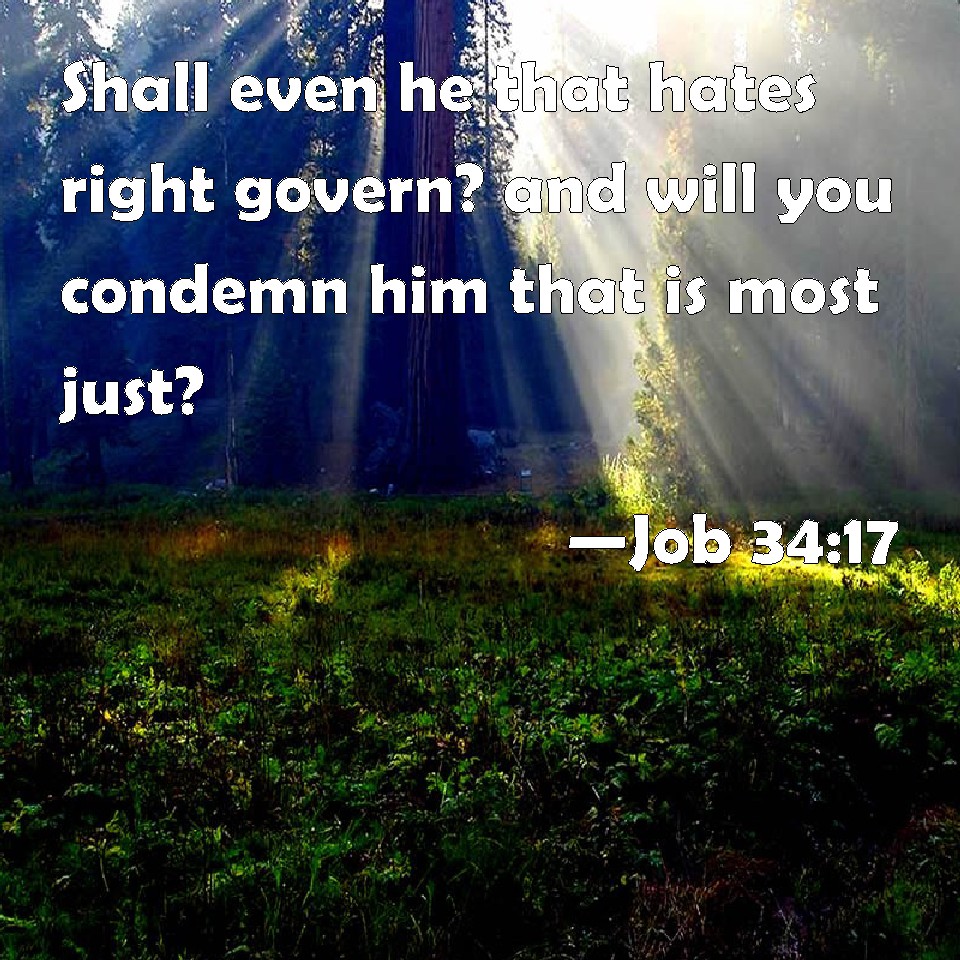 Job 34:17 Shall even he that hates right govern? and will you condemn him that is most just?