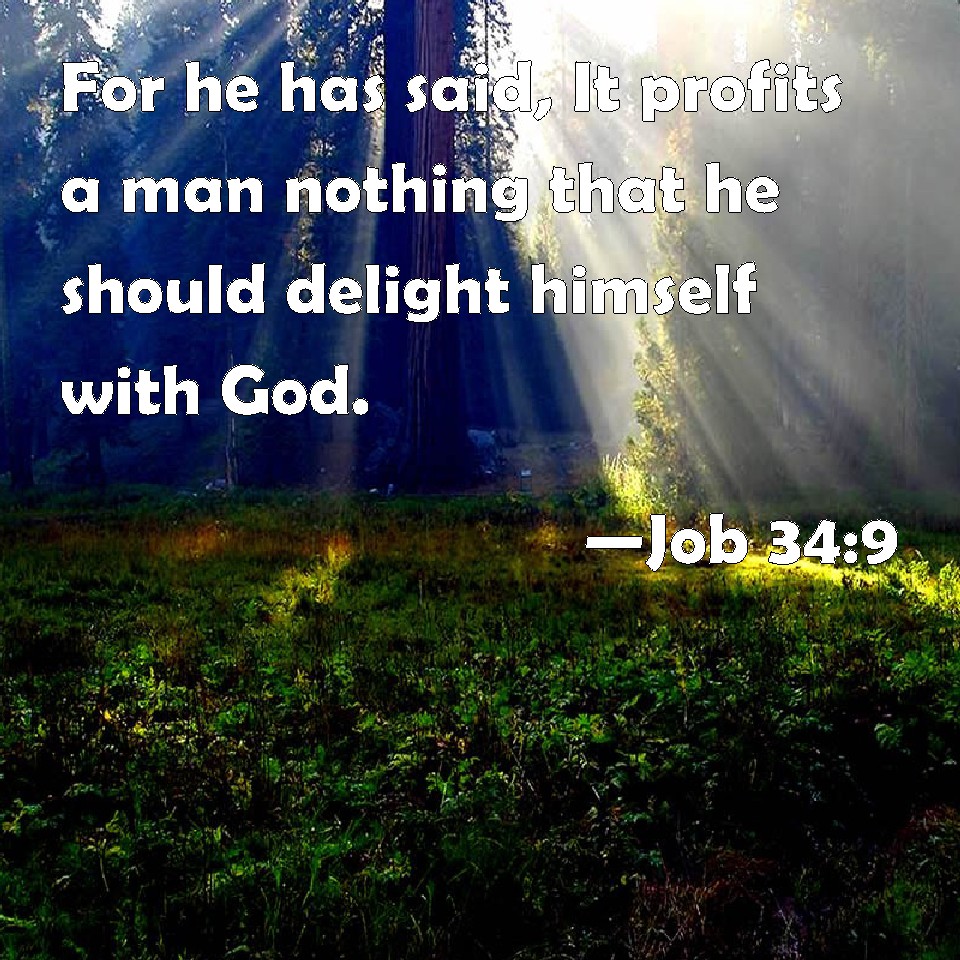 Job 34:9 For he has said, It profits a man nothing that he should delight himself with God.
