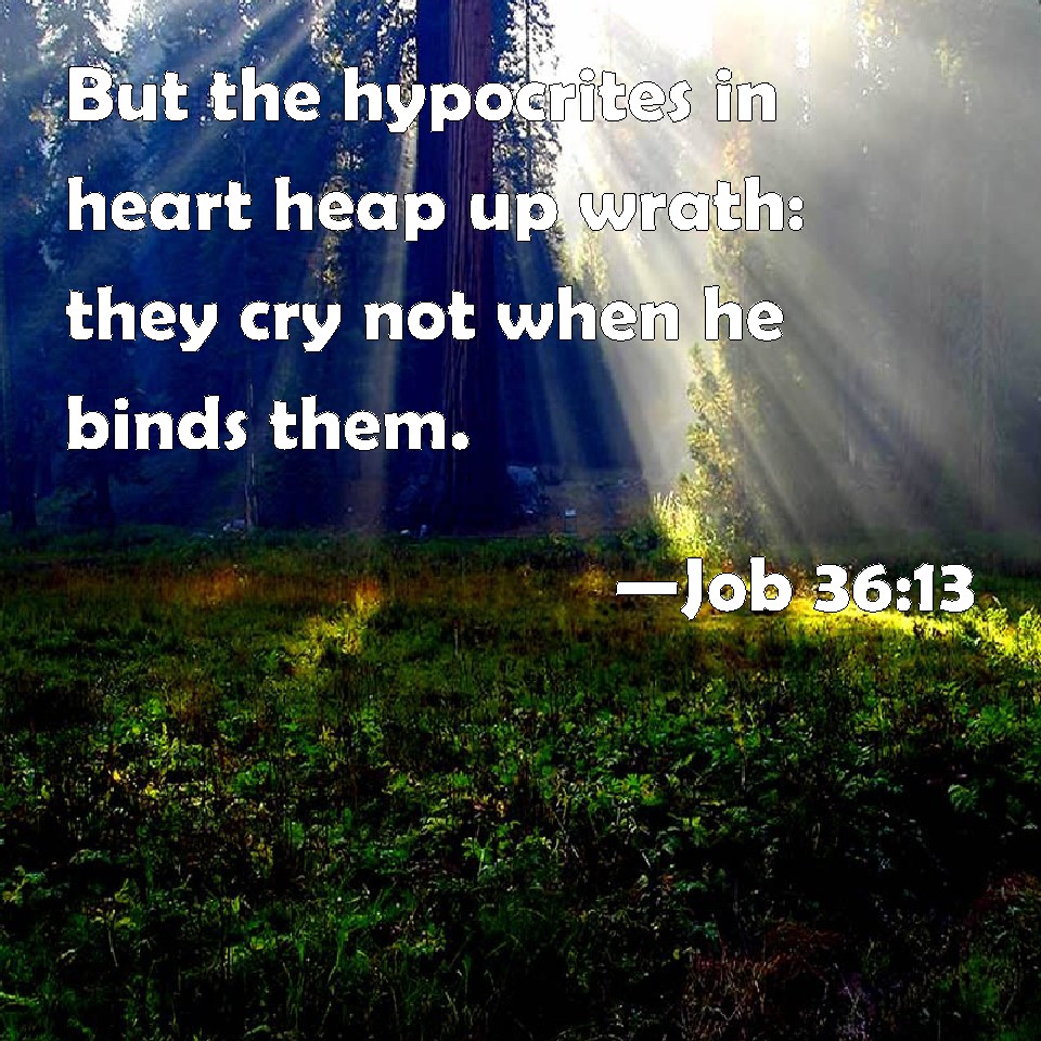 Job 36:13 But the hypocrites in heart heap up wrath: they cry not when he binds them.