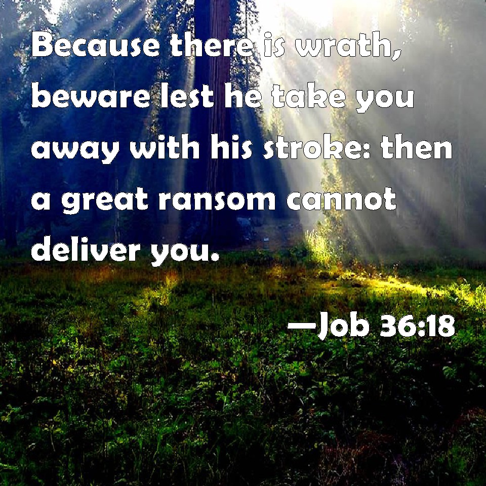 Job 36:18 Because there is wrath, beware lest he take you away with his stroke: then a great ransom cannot deliver you.