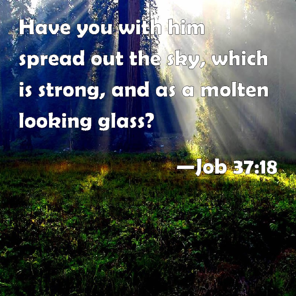 Choose a Background Job 37:18 Have you with him spread out the sky, which is strong, and as a molten looking glass? KJV: Hast thou with him spread out the sky, which is strong, and as a molten looking glass? DRB: Thou perhaps hast made the heavens with him, which are most strong, as if they were of molten brass. DBT: Hast thou with him spread out the sky, firm, like a molten mirror? ERV: Canst thou with him spread out the sky, which is strong as a molten mirror? WBT: Hast thou with him spread out the sky which is strong, and as a molten looking-glass? WEB: Can you, with him, spread out the sky, which is strong as a cast metal mirror? YLT: Thou hast made an expanse with Him For the clouds — strong as a hard mirror!Links Job 37:18 NIV • Job 37:18 NLT • Job 37:18 ESV • Job 37:18 NASB • Job 37:18 KJV • Job 37:18 Interlinear • Job 37:18 Commentaries • Job 37:18 Parallel Texts • Job 37:18 Bible Apps • Job 37:18 Parallel • Bible Hub |