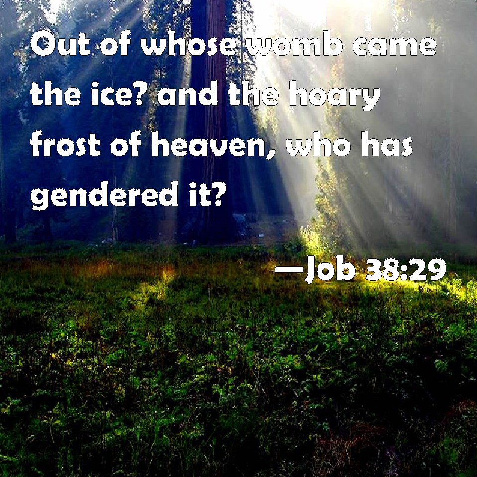 Out of whose womb came the ice? and the hoary frost of heaven, who hath gendered it?