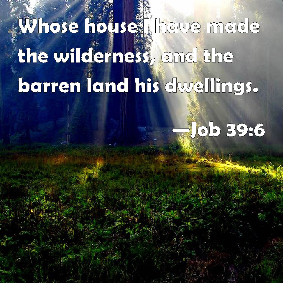 Job 39:6 Whose house I have made the wilderness, and the barren land his dwellings.