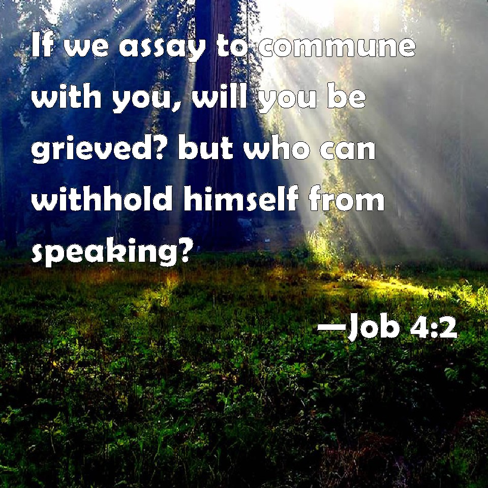 Job 4:2 If we assay to commune with you, will you be grieved? but who can withhold himself from speaking?