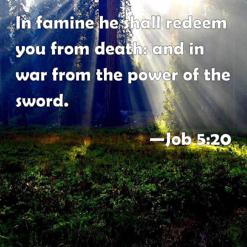 Job 5:20 In famine he shall redeem you from death: and in war from the power of the sword.
