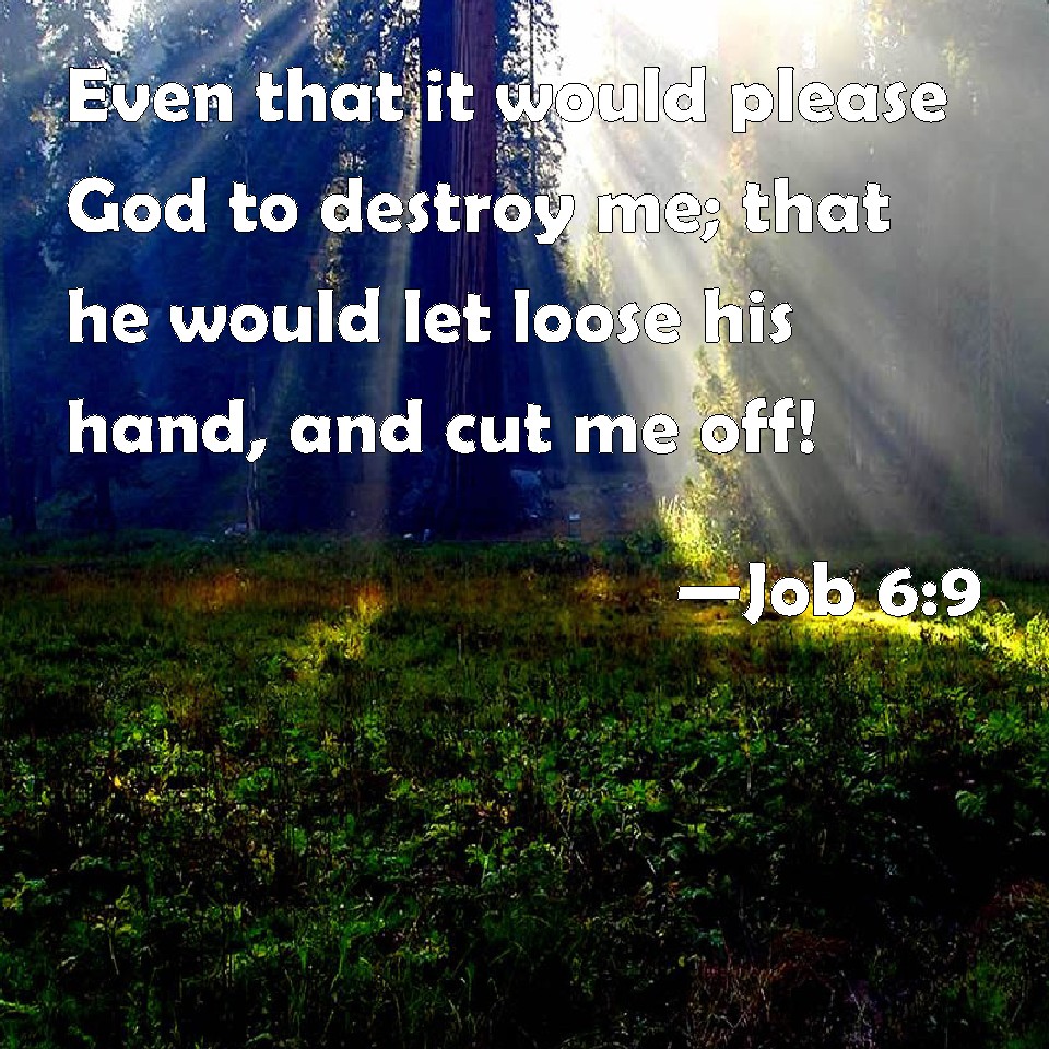 Job 6:9 Even that it would please God to destroy me; that he would let loose his hand, and cut me off!