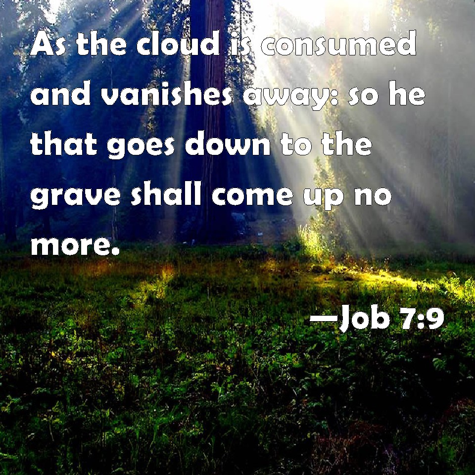 Job 7:9 As the cloud is consumed and vanishes away: so he that goes down to the grave shall come up no more.