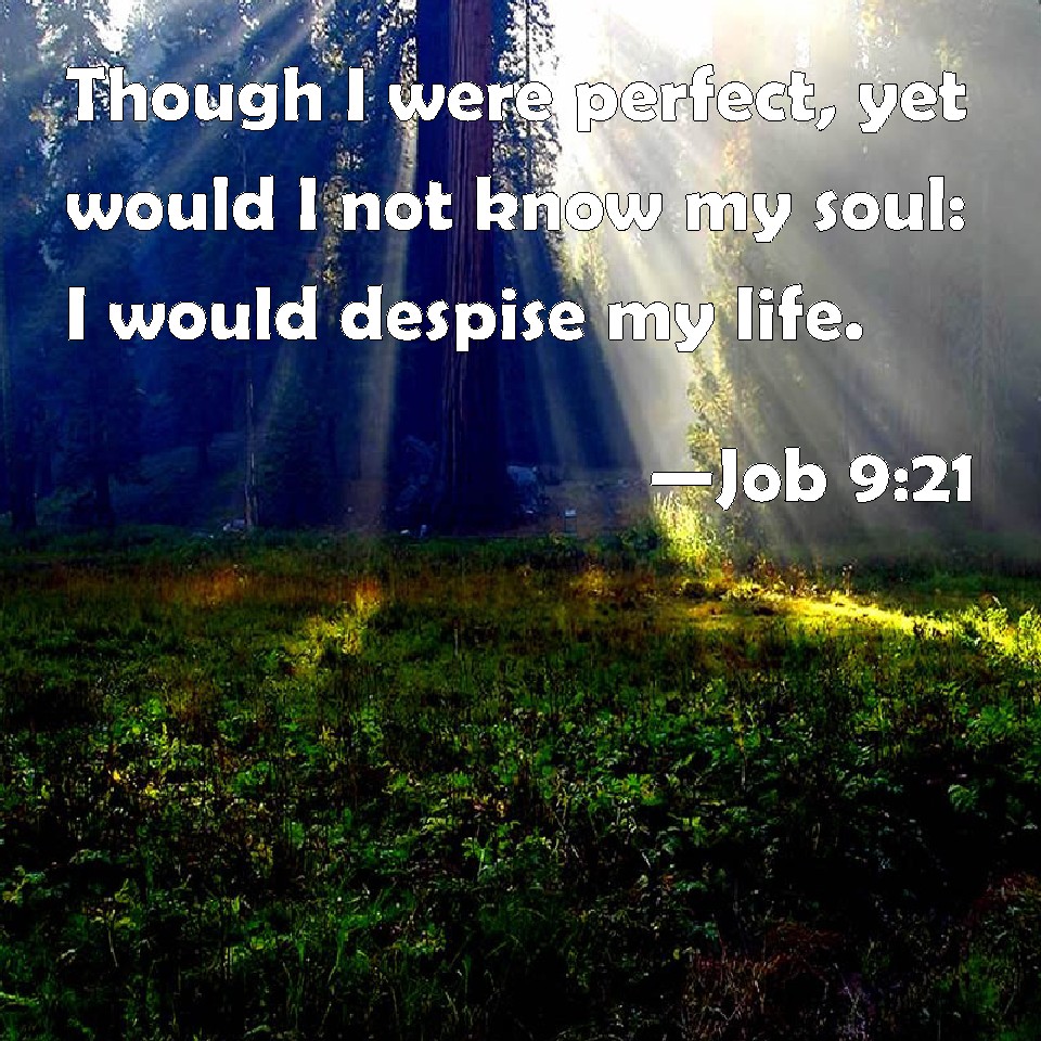 Job 9:21 Though I were perfect, yet would I not know my soul: I would despise my life.