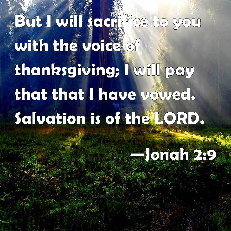 Jonah 2:9 But I will sacrifice to you with the voice of thanksgiving; I will pay that that I have vowed. Salvation is of the LORD.
