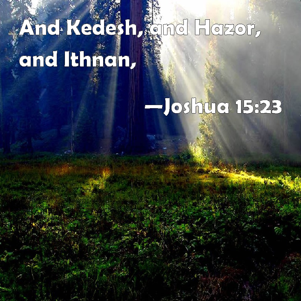 Choose a Background Joshua 15:23 And Kedesh, and Hazor, and Ithnan, KJV: And Kedesh, and Hazor, and Ithnan, DRB: And Cades and Asor and Jethnam, DBT: and Kedesh, and Hazor, and Jithnan, ERV: and Kedesh, and Hazor, and Ithnan; WBT: And Kedesh, and Hazor, and Ithnan, WEB: Kedesh, Hazor, Ithnan, YLT: and Kedesh, and Hazor, and Ithnan,Links Joshua 15:23 NIV • Joshua 15:23 NLT • Joshua 15:23 ESV • Joshua 15:23 NASB • Joshua 15:23 KJV • Joshua 15:23 Interlinear • Joshua 15:23 Commentaries • Joshua 15:23 Parallel Texts • Joshua 15:23 Bible Apps • Joshua 15:23 Parallel • Bible Hub |