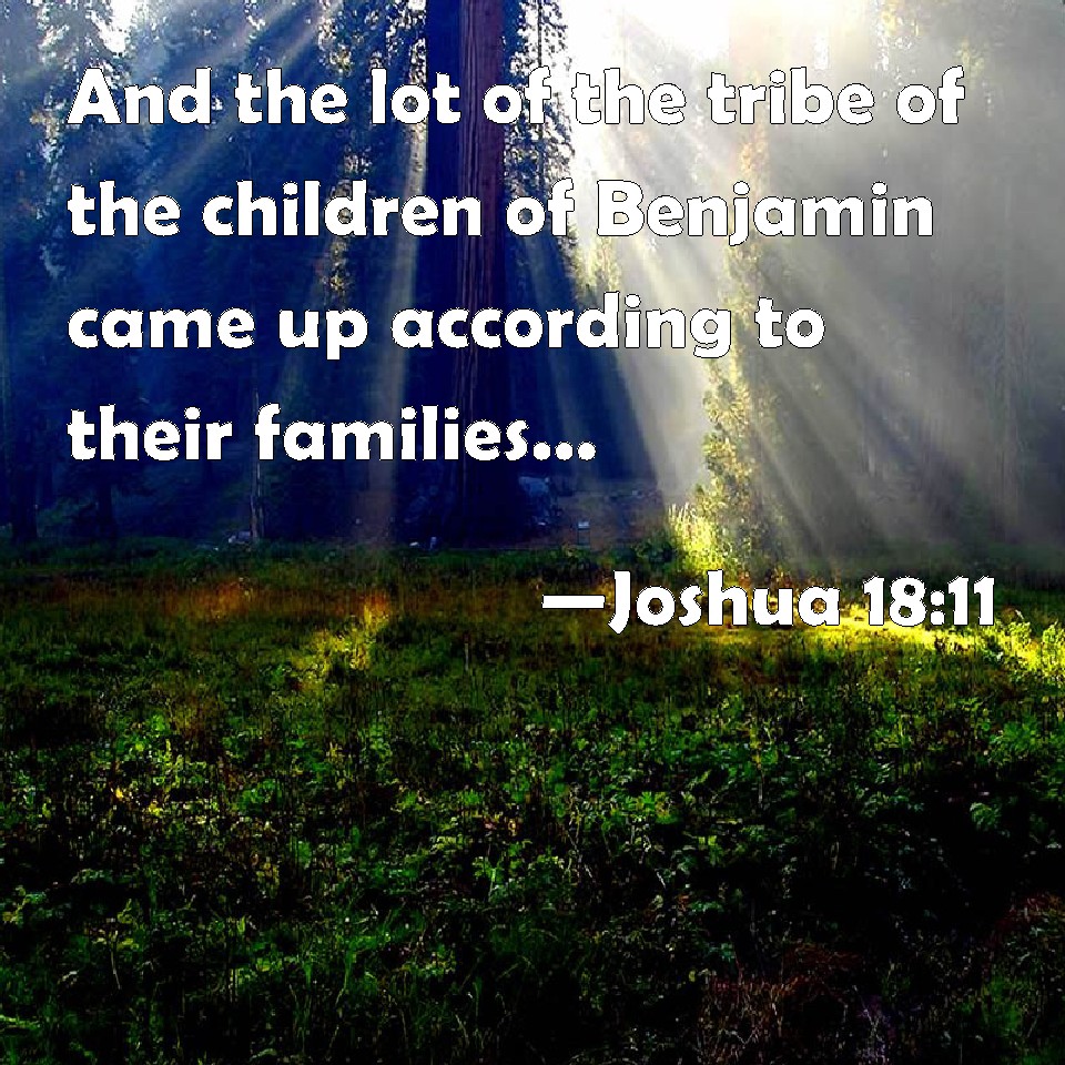 Joshua 18:11 And the lot of the tribe of the children of Benjamin came up according to their families: and the coast of their lot came forth between the children of Judah and the children of Joseph.