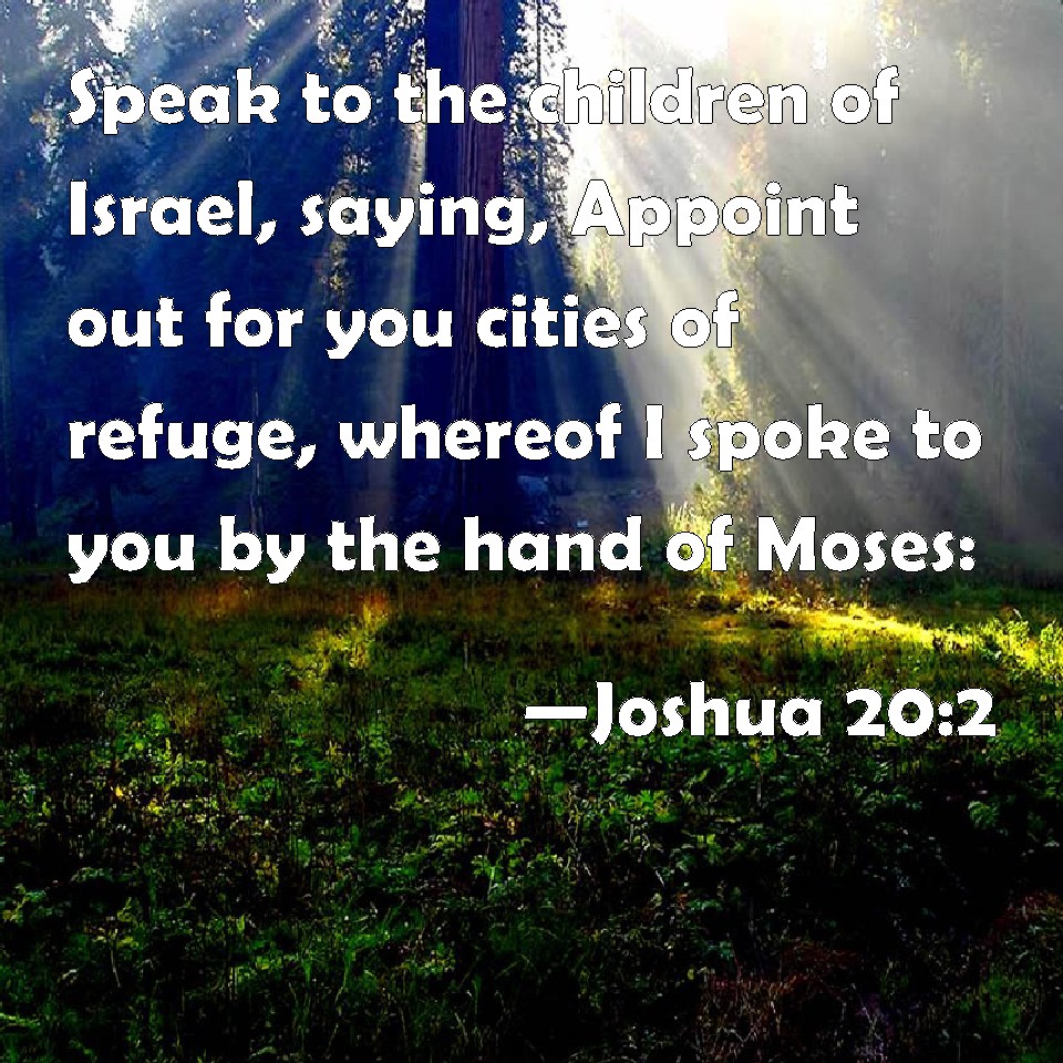 Choose a Background Joshua 20:2 Speak to the children of Israel, saying, Appoint out for you cities of refuge, whereof I spoke to you by the hand of Moses: KJV: Speak to the children of Israel, saying, Appoint out for you cities of refuge, whereof I spake unto you by the hand of Moses: DRB: Appoint cities of refuge, of which I spoke to you by the hand of Moses: DBT: Speak to the children of Israel, saying, Appoint for yourselves the cities of refuge, whereof I spoke unto you through Moses, ERV: Speak to the children of Israel, saying, Assign you the cities of refuge, whereof I spake unto you by the hand of Moses: WBT: Speak to the children of Israel, saying, Appoint for you cities of refuge, of which I spoke to you by the hand of Moses: WEB: "Speak to the children of Israel, saying, 'Assign the cities of refuge, of which I spoke to you by Moses, YLT: 'Speak unto the sons of Israel, saying, Give for you cities of refuge, as I have spoken unto you by the hand of Moses,Links Joshua 20:2 NIV • Joshua 20:2 NLT • Joshua 20:2 ESV • Joshua 20:2 NASB • Joshua 20:2 KJV • Joshua 20:2 Interlinear • Joshua 20:2 Commentaries • Joshua 20:2 Parallel Texts • Joshua 20:2 Bible Apps • Joshua 20:2 Parallel • Bible Hub |