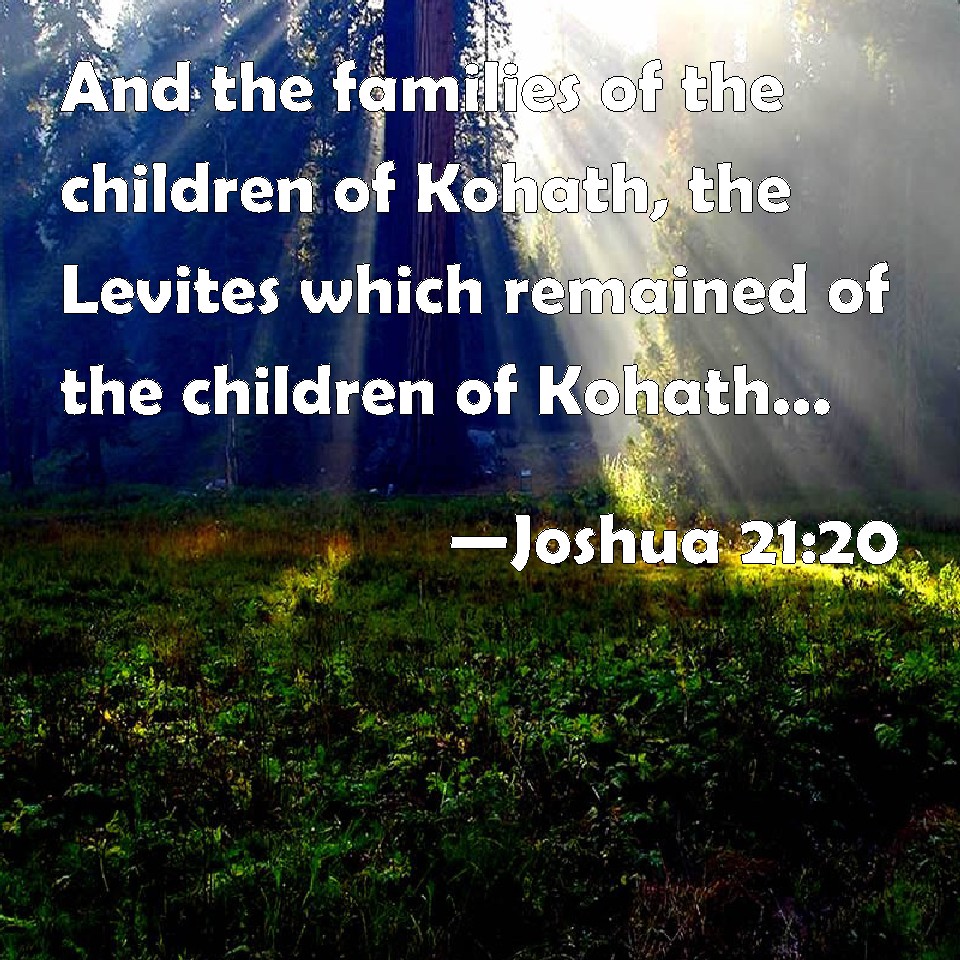 Choose a Background Joshua 21:20 And the families of the children of Kohath, the Levites which remained of the children of Kohath, even they had the cities of their lot out of the tribe of Ephraim. KJV: And the families of the children of Kohath, the Levites which remained of the children of Kohath, even they had the cities of their lot out of the tribe of Ephraim. DRB: And to the rest of the families of the children of Caath of the race of Levi was given this possession. DBT: And to the families of the children of Kohath, the Levites that remained of the children of Kohath, they gave cities. And the cities of their lot were out of the tribe of Ephraim, ERV: And the families of the children of Kohath, the Levites, even the rest of the children of Kohath, they had the cities of their lot out of the tribe of Ephraim. WBT: And the families of the children of Kohath, the Levites who remained of the children of Kohath, even they had the cities of their lot out of the tribe of Ephraim. WEB: The families of the children of Kohath, the Levites, even the rest of the children of Kohath, had the cities of their lot out of the tribe of Ephraim. YLT: And for the families of the sons of Kohath, the Levites, who are left of the sons of Kohath, even the cities of their lot are of the tribe of Ephraim;Links Joshua 21:20 NIV • Joshua 21:20 NLT • Joshua 21:20 ESV • Joshua 21:20 NASB • Joshua 21:20 KJV • Joshua 21:20 Interlinear • Joshua 21:20 Commentaries • Joshua 21:20 Parallel Texts • Joshua 21:20 Bible Apps • Joshua 21:20 Parallel • Bible Hub |