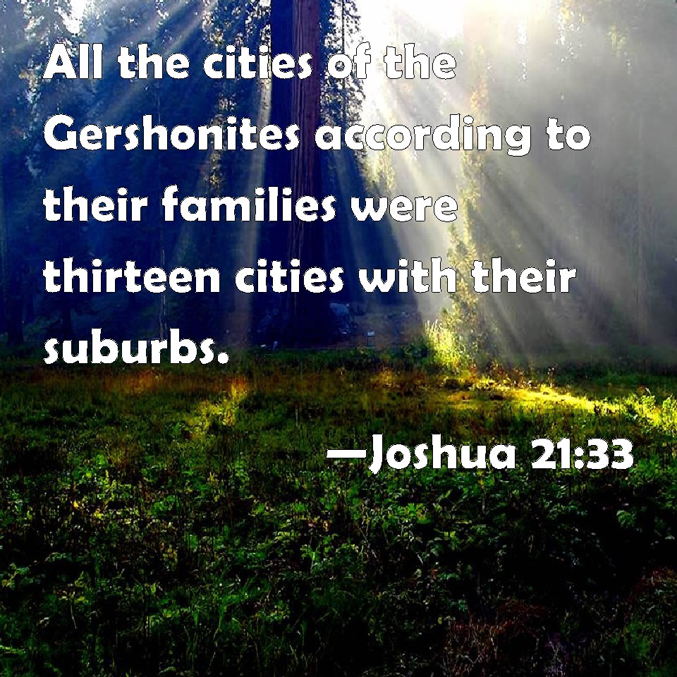 Joshua 21:33 All the cities of the Gershonites according to their families were thirteen cities with their suburbs.