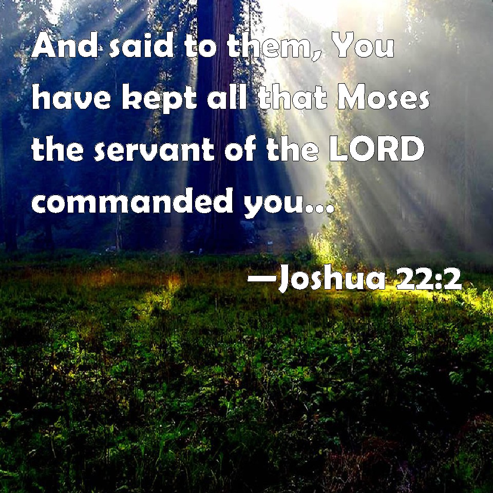 Choose a Background Joshua 22:2 And said to them, You have kept all that Moses the servant of the LORD commanded you, and have obeyed my voice in all that I commanded you: KJV: And said unto them, Ye have kept all that Moses the servant of the LORD commanded you, and have obeyed my voice in all that I commanded you: DRB: And said to them: You have done all that Moses the servant of the Lord commanded you: you have also obeyed me in all things, DBT: and said unto them, Ye have kept all that Moses the servant of Jehovah commanded you, and have hearkened to my voice in all that I commanded you. ERV: and said unto them, Ye have kept all that Moses the servant of the LORD commanded you, and have hearkened unto my voice in all that I commanded you: WBT: And said to them, Ye have kept all that Moses the servant of the LORD commanded you, and have obeyed my voice in all that I commanded you: WEB: and said to them, "You have kept all that Moses the servant of Yahweh commanded you, and have listened to my voice in all that I commanded you. YLT: and saith unto them, 'Ye — ye have kept the whole of that which Moses, servant of Jehovah, commanded you, and ye hearken to my voice, to all that I have commanded you;Links Joshua 22:2 NIV • Joshua 22:2 NLT • Joshua 22:2 ESV • Joshua 22:2 NASB • Joshua 22:2 KJV • Joshua 22:2 Interlinear • Joshua 22:2 Commentaries • Joshua 22:2 Parallel Texts • Joshua 22:2 Bible Apps • Joshua 22:2 Parallel • Bible Hub |