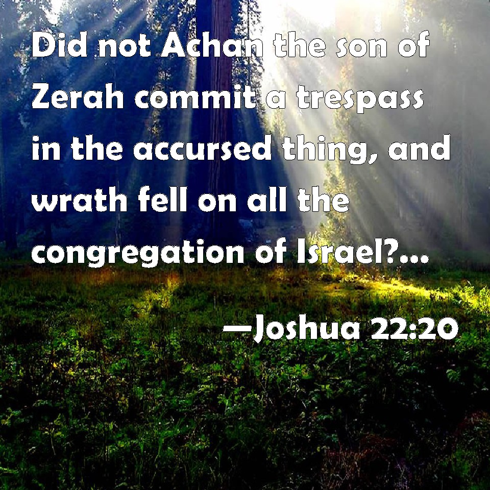Joshua 22:20 Did not Achan the son of Zerah commit a trespass in the accursed thing, and wrath fell on all the congregation of Israel? and that man perished not alone in his iniquity.