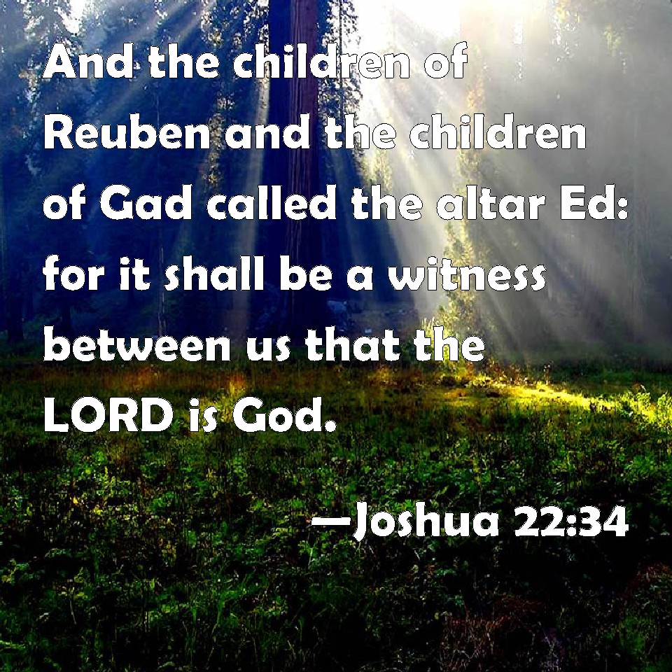 Joshua 22:34 And the children of Reuben and the children of Gad called the altar Ed: for it shall be a witness between us that the LORD is God.