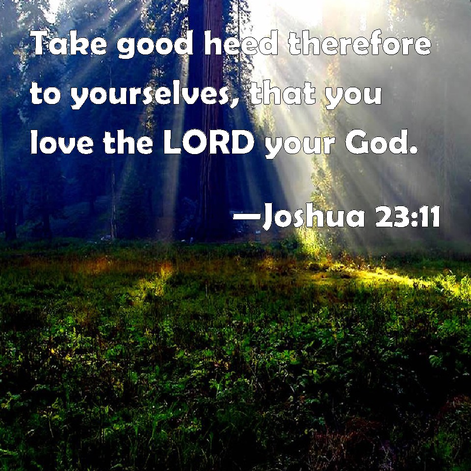 Joshua 23:11 Take good heed therefore to yourselves, that you love the LORD your God.