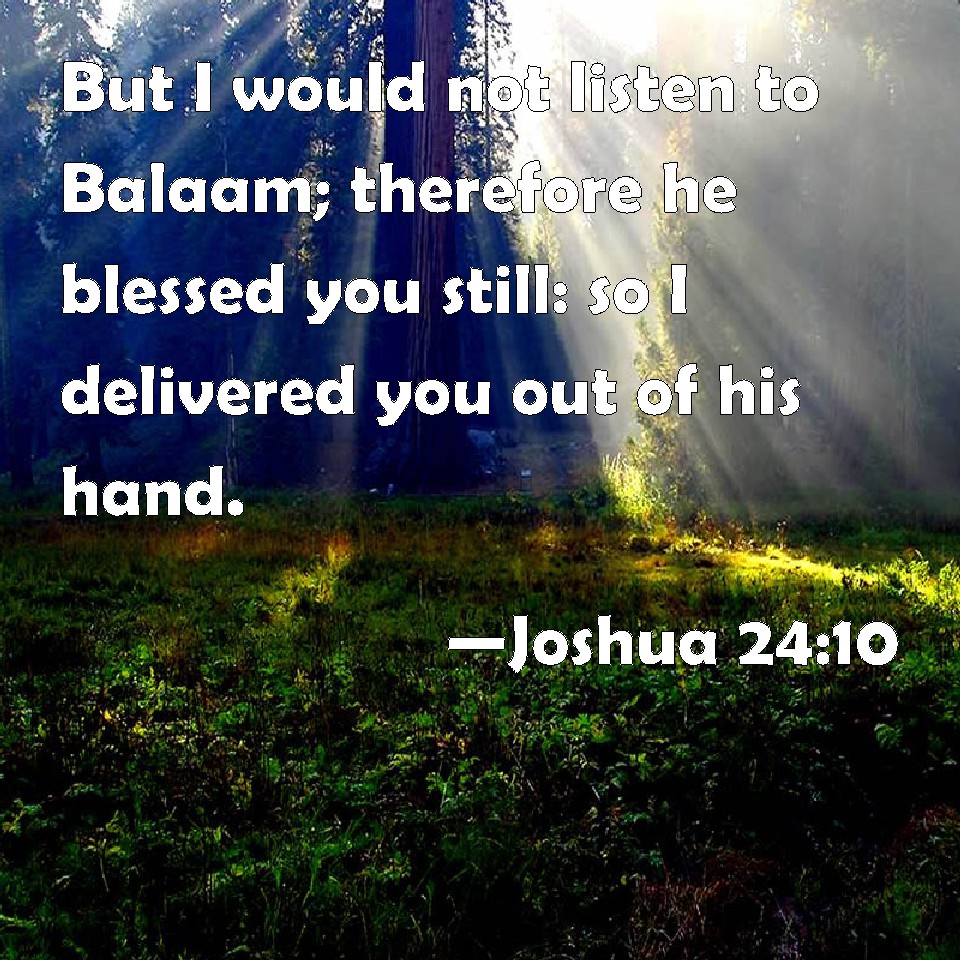 Joshua 24:10 But I would not listen to Balaam; therefore he blessed you still: so I delivered you out of his hand.