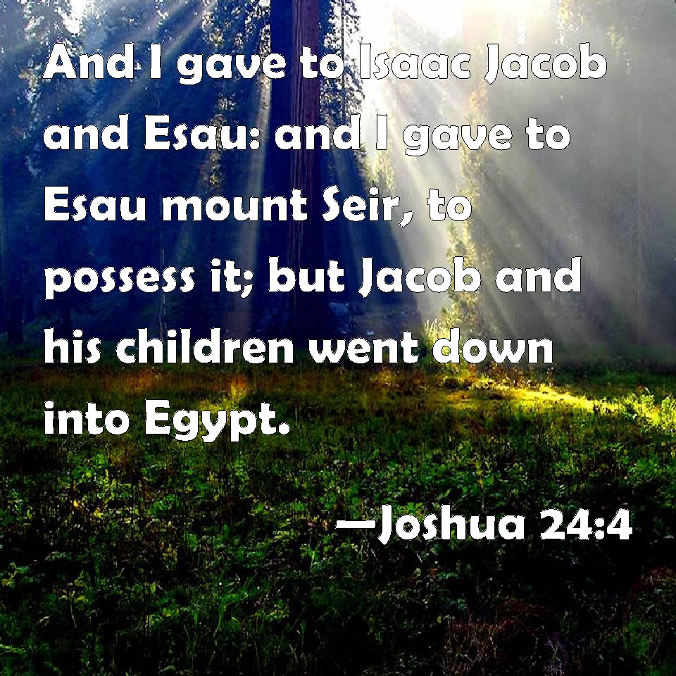 Joshua 24:4 And I gave to Isaac Jacob and Esau: and I gave to Esau mount Seir, to possess it; but Jacob and his children went down into Egypt.
