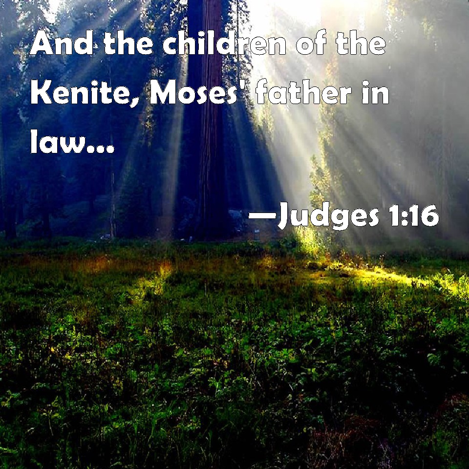 Judges 1:16 And the children of the Kenite, Moses' father in law, went up out of the city of palm trees with the children of Judah into the wilderness of Judah, which lies in the south of Arad; and they went and dwelled among the people.