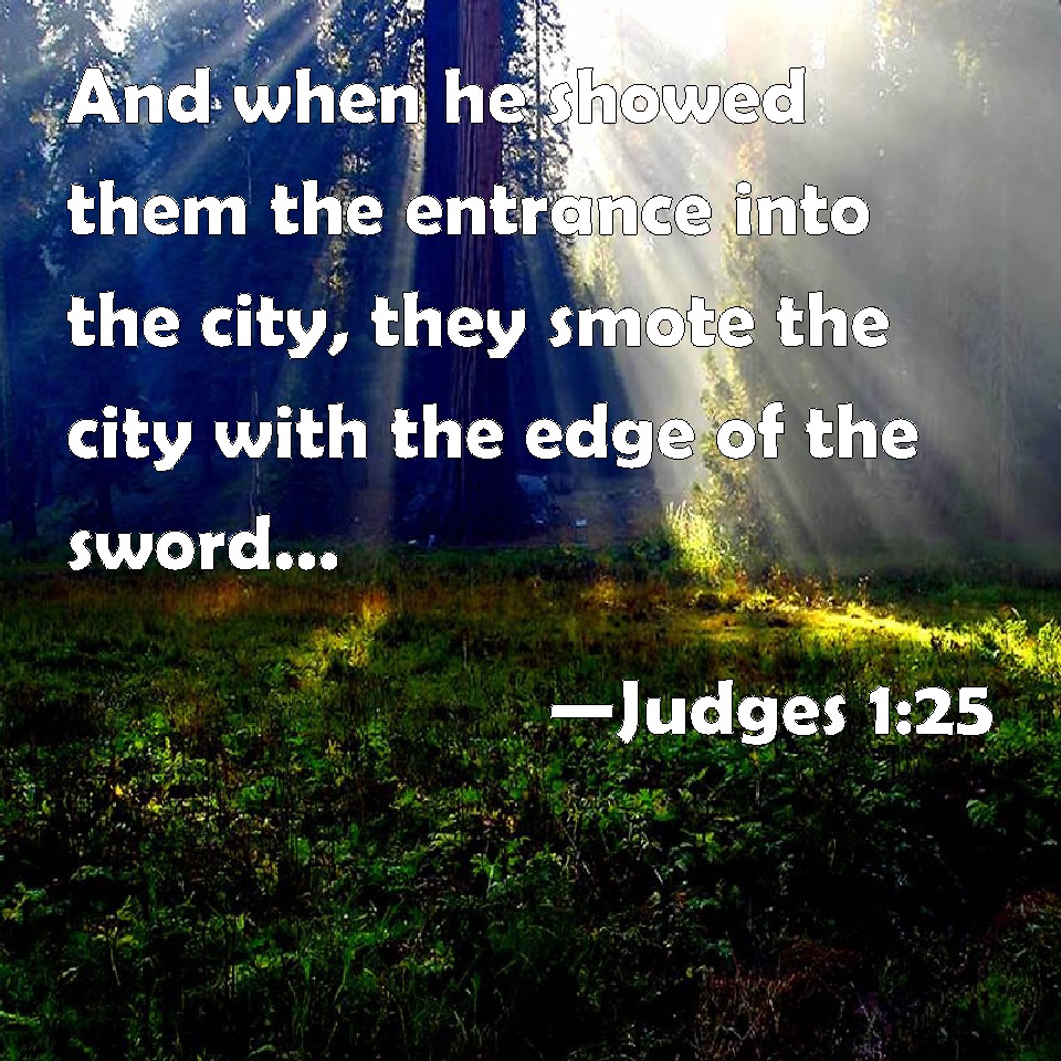 Judges 1:25 And when he showed them the entrance into the city, they smote the city with the edge of the sword; but they let go the man and all his family.
