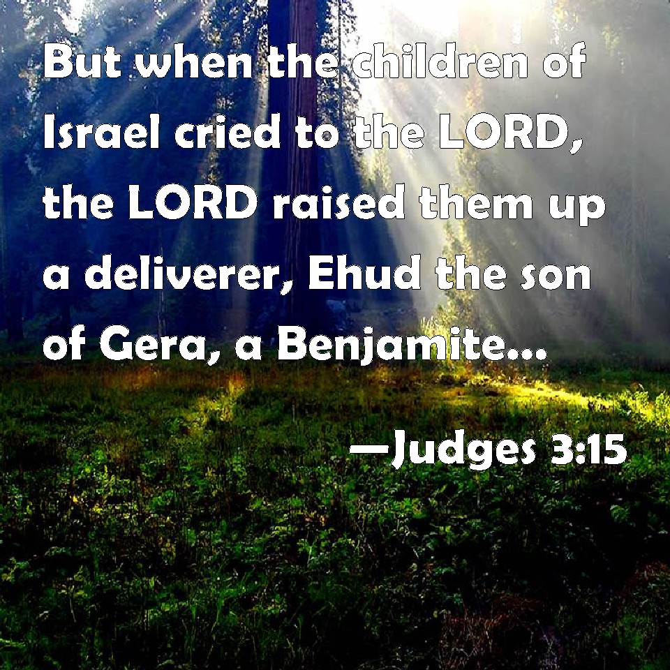 Choose a Background Judges 3:15 But when the children of Israel cried to the LORD, the LORD raised them up a deliverer, Ehud the son of Gera, a Benjamite, a man left handed: and by him the children of Israel sent a present to Eglon the king of Moab. KJV: But when the children of Israel cried unto the LORD, the LORD raised them up a deliverer, Ehud the son of Gera, a Benjamite, a man lefthanded: and by him the children of Israel sent a present unto Eglon the king of Moab. DRB: And afterwards they cried to the Lord, who raised them up a saviour called Aod, the son of Gera, the son of Jemini, who used the left hand as well as the right. And the children of Israel sent presents to Eglon king of Moab by him. DBT: But when the people of Israel cried to the LORD, the LORD raised up for them a deliverer, Ehud, the son of Gera, the Benjaminite, a left-handed man. The people of Israel sent tribute by him to Eglon the king of Moab. ERV: But when the children of Israel cried unto the LORD, the LORD raised them up a saviour, Ehud the son of Gera, the Benjamite, a man lefthanded: and the children of Israel sent a present by him unto Eglon the king of Moab. WBT: But when the children of Israel cried to the LORD, the LORD raised them up a deliverer, Ehud the son of Gera, a Benjaminite, a man left-handed: and by him the children of Israel sent a present to Eglon king of Moab. WEB: But when the children of Israel cried to Yahweh, Yahweh raised them up a savior, Ehud the son of Gera, the Benjamite, a man left-handed. The children of Israel sent tribute by him to Eglon the king of Moab. YLT: And the sons of Israel cry unto Jehovah, and Jehovah raiseth to them a saviour, Ehud son of Gera, a Benjamite (a man — shut of his right hand), and the sons of Israel send by his hand a present to Eglon king of Moab;Links Judges 3:15 NIV • Judges 3:15 NLT • Judges 3:15 ESV • Judges 3:15 NASB • Judges 3:15 KJV • Judges 3:15 Interlinear • Judges 3:15 Commentaries • Judges 3:15 Parallel Texts • Judges 3:15 Bible Apps • Judges 3:15 Parallel • Bible Hub |