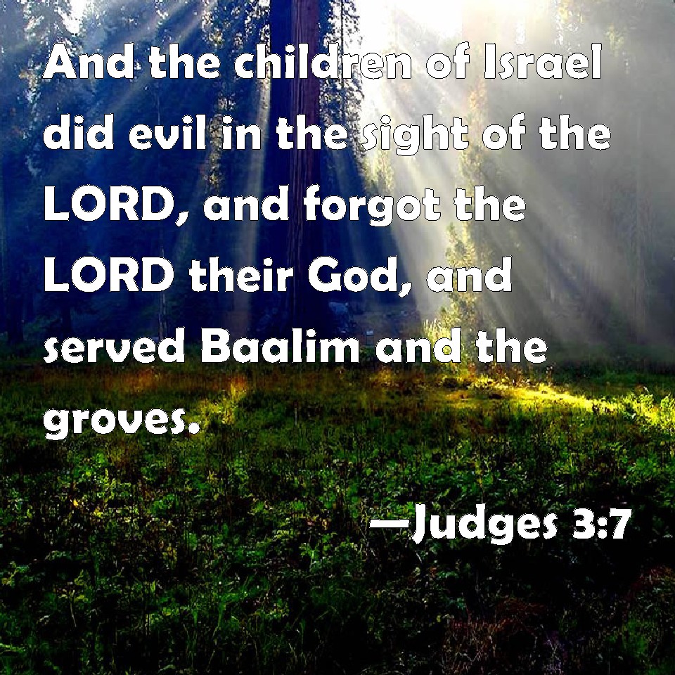 Choose a Background Judges 3:7 And the children of Israel did evil in the sight of the LORD, and forgot the LORD their God, and served Baalim and the groves. KJV: And the children of Israel did evil in the sight of the LORD, and forgat the LORD their God, and served Baalim and the groves. DRB: And they did evil in the sight of the Lord, and they forgot their God, and served Baalim and Astaroth. DBT: And the people of Israel did what was evil in the sight of the LORD, forgetting the LORD their God, and serving the Ba'als and the Ashe'roth. ERV: And the children of Israel did that which was evil in the sight of the LORD, and forgat the LORD their God, and served the Baalim and the Asheroth. WBT: And the children of Israel did evil in the sight of the LORD, and forgot the LORD their God, and served Baalim, and the groves. WEB: The children of Israel did that which was evil in the sight of Yahweh, and forgot Yahweh their God, and served the Baals and the Asheroth. YLT: and the sons of Israel do the evil thing in the eyes of Jehovah, and forget Jehovah their God, and serve the Baalim and the shrines.Links Judges 3:7 NIV • Judges 3:7 NLT • Judges 3:7 ESV • Judges 3:7 NASB • Judges 3:7 KJV • Judges 3:7 Interlinear • Judges 3:7 Commentaries • Judges 3:7 Parallel Texts • Judges 3:7 Bible Apps • Judges 3:7 Parallel • Bible Hub |