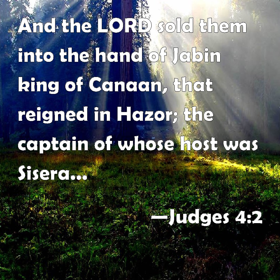 Choose a Background Judges 4:2 And the LORD sold them into the hand of Jabin king of Canaan, that reigned in Hazor; the captain of whose host was Sisera, which dwelled in Harosheth of the Gentiles. KJV: And the LORD sold them into the hand of Jabin king of Canaan, that reigned in Hazor; the captain of whose host was Sisera, which dwelt in Harosheth of the Gentiles. DRB: And the Lord delivered them up into the hands of Jaban king of Chanaan, who reigned in Asor: and he had a general of his army named Sisara, and he dwelt in Haroseth of the Gentiles. DBT: And the LORD sold them into the hand of Jabin king of Canaan, who reigned in Hazor; the commander of his army was Sis'era, who dwelt in Haro'sheth-ha-goiim. ERV: And the LORD sold them into the hand of Jabin king of Canaan, that reigned in Hazor; the captain of whose host was Sisera, which dwelt in Harosheth of the Gentiles. WBT: And the LORD sold them into the hand of Jabin king of Canaan that reigned in Hazor, the captain of whose host was Sisera, who dwelt in Harosheth of the Gentiles. WEB: Yahweh sold them into the hand of Jabin king of Canaan, who reigned in Hazor; the captain of whose army was Sisera, who lived in Harosheth of the Gentiles. YLT: and Jehovah selleth them into the hand of Jabin king of Canaan, who hath reigned in Hazor, and the head of his host is Sisera, and he is dwelling in Harosheth of the Goyim;Links Judges 4:2 NIV • Judges 4:2 NLT • Judges 4:2 ESV • Judges 4:2 NASB • Judges 4:2 KJV • Judges 4:2 Interlinear • Judges 4:2 Commentaries • Judges 4:2 Parallel Texts • Judges 4:2 Bible Apps • Judges 4:2 Parallel • Bible Hub |