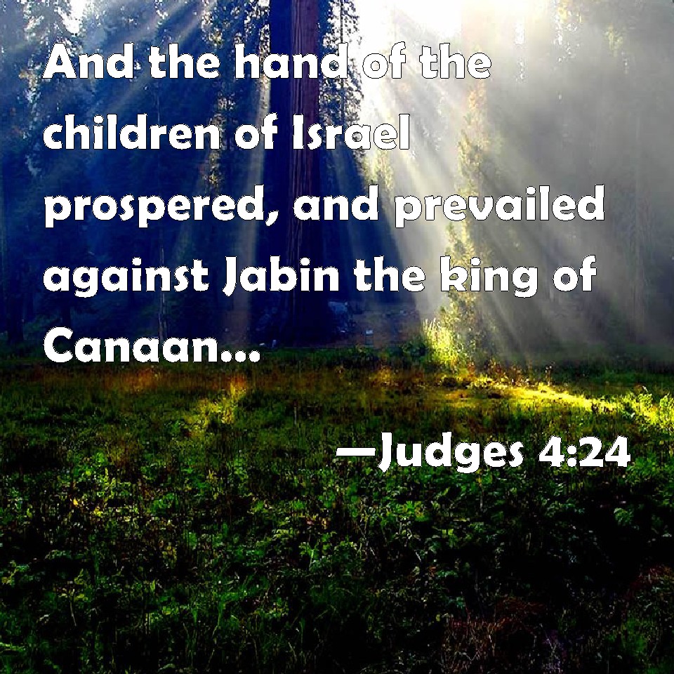 Choose a Background Judges 4:24 And the hand of the children of Israel prospered, and prevailed against Jabin the king of Canaan, until they had destroyed Jabin king of Canaan. KJV: And the hand of the children of Israel prospered, and prevailed against Jabin the king of Canaan, until they had destroyed Jabin king of Canaan. DRB: Who grew daily stronger, and with a mighty hand overpowered Jabin king of Chanaan, till they quite destroyed him. DBT: And the hand of the people of Israel bore harder and harder on Jabin the king of Canaan, until they destroyed Jabin king of Canaan. ERV: And the hand of the children of Israel prevailed more and more against Jabin the king of Canaan, until they had destroyed Jabin king of Canaan. WBT: And the hand of the children of Israel prospered, and prevailed against Jabin the king of Canaan, until they had destroyed Jabin king of Canaan. WEB: The hand of the children of Israel prevailed more and more against Jabin the king of Canaan, until they had destroyed Jabin king of Canaan. YLT: and the hand of the sons of Israel goeth, going on and becoming hard on Jabin king of Canaan, till that they have cut off Jabin king of Canaan.Links Judges 4:24 NIV • Judges 4:24 NLT • Judges 4:24 ESV • Judges 4:24 NASB • Judges 4:24 KJV • Judges 4:24 Interlinear • Judges 4:24 Commentaries • Judges 4:24 Parallel Texts • Judges 4:24 Bible Apps • Judges 4:24 Parallel • Bible Hub |