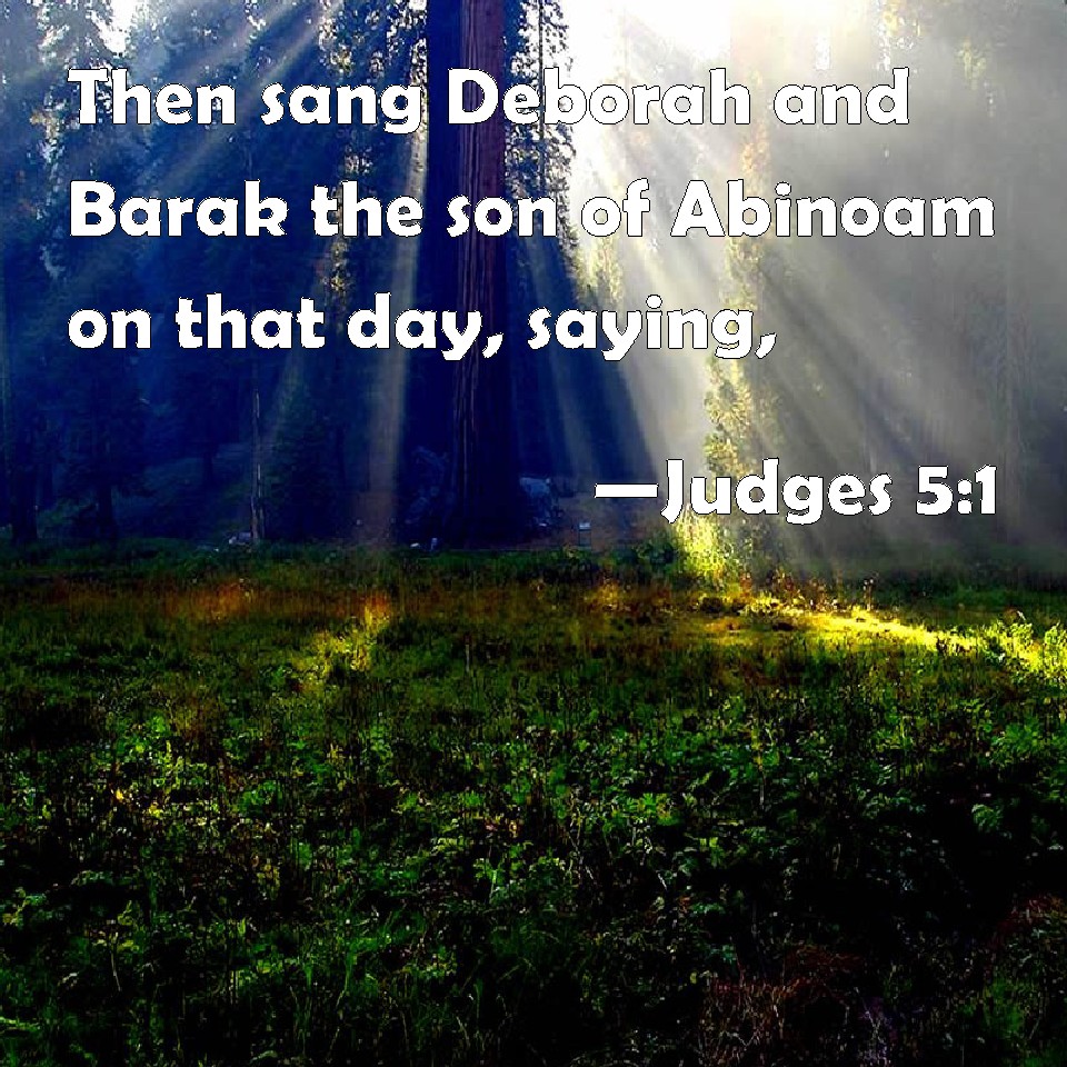 Choose a Background Judges 5:1 Then sang Deborah and Barak the son of Abinoam on that day, saying, KJV: Then sang Deborah and Barak the son of Abinoam on that day, saying, DRB: In that day Debbora and Barac son of Abinoem sung, and said: DBT: Then sang Deb'orah and Barak the son of Abin'o-am on that day: ERV: Then sang Deborah and Barak the son of Abinoam on that day, saying, WBT: Then sang Deborah and Barak the son of Abinoam on that day, saying, WEB: Then Deborah and Barak the son of Abinoam sang on that day, saying, YLT: And Deborah singeth — also Barak son of Abinoam — on that day, saying: — Links Judges 5:1 NIV • Judges 5:1 NLT • Judges 5:1 ESV • Judges 5:1 NASB • Judges 5:1 KJV • Judges 5:1 Interlinear • Judges 5:1 Commentaries • Judges 5:1 Parallel Texts • Judges 5:1 Bible Apps • Judges 5:1 Parallel • Bible Hub |