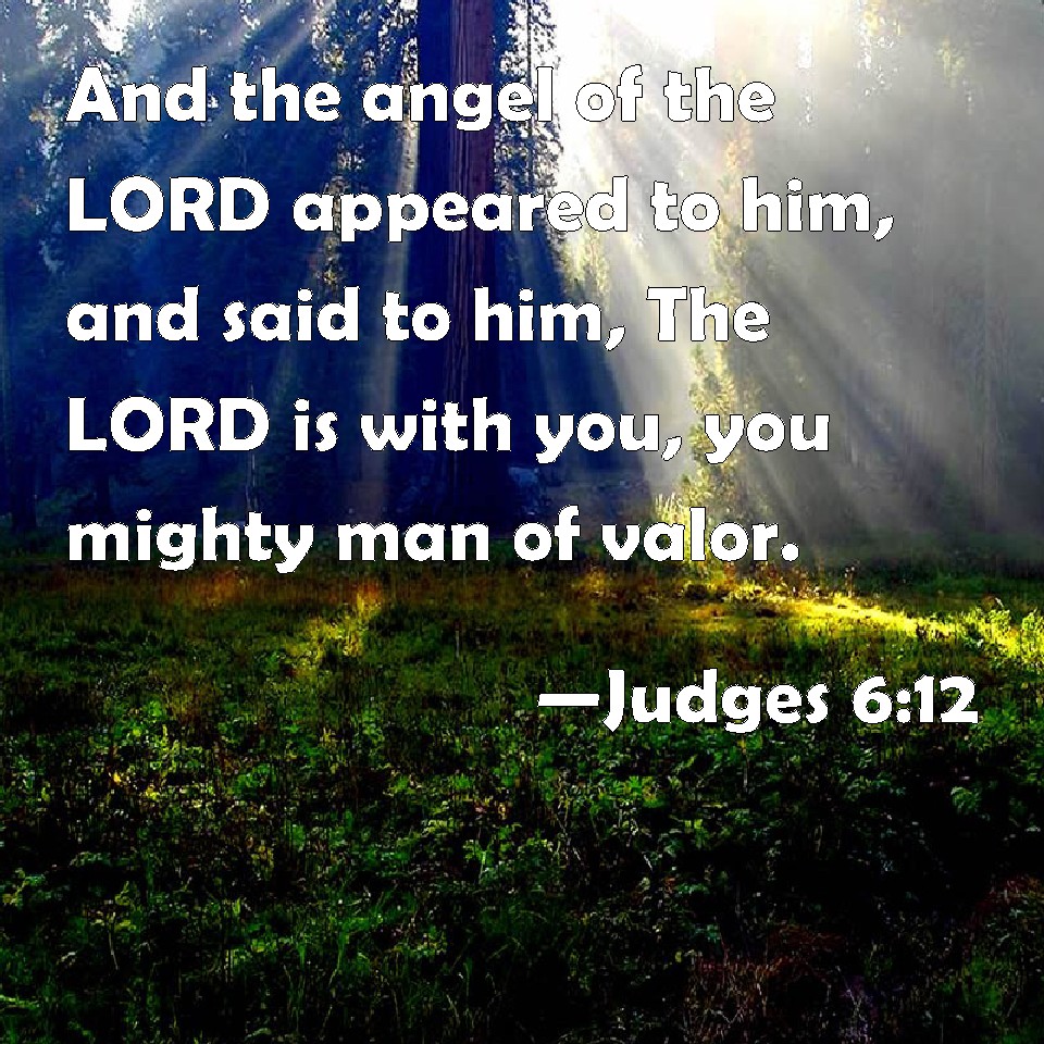 Choose a Background Judges 6:12 And the angel of the LORD appeared to him, and said to him, The LORD is with you, you mighty man of valor. KJV: And the angel of the LORD appeared unto him, and said unto him, The LORD is with thee, thou mighty man of valour. DRB: The angel of the Lord appeared to him, and said: The Lord is with thee, O most valiant of men. DBT: And the angel of the LORD appeared to him and said to him, "The LORD is with you, you mighty man of valor." ERV: And the angel of the LORD appeared unto him, and said unto him, The LORD is with thee, thou mighty man of valour. WBT: And the angel of the LORD appeared to him, and said to him, The LORD is with thee, thou mighty man of valor. WEB: The angel of Yahweh appeared to him, and said to him, "Yahweh is with you, you mighty man of valor!" YLT: and the messenger of Jehovah appeareth unto him, and saith unto him, 'Jehovah is with thee, O mighty one of valour.'Links Judges 6:12 NIV • Judges 6:12 NLT • Judges 6:12 ESV • Judges 6:12 NASB • Judges 6:12 KJV • Judges 6:12 Interlinear • Judges 6:12 Commentaries • Judges 6:12 Parallel Texts • Judges 6:12 Bible Apps • Judges 6:12 Parallel • Bible Hub |