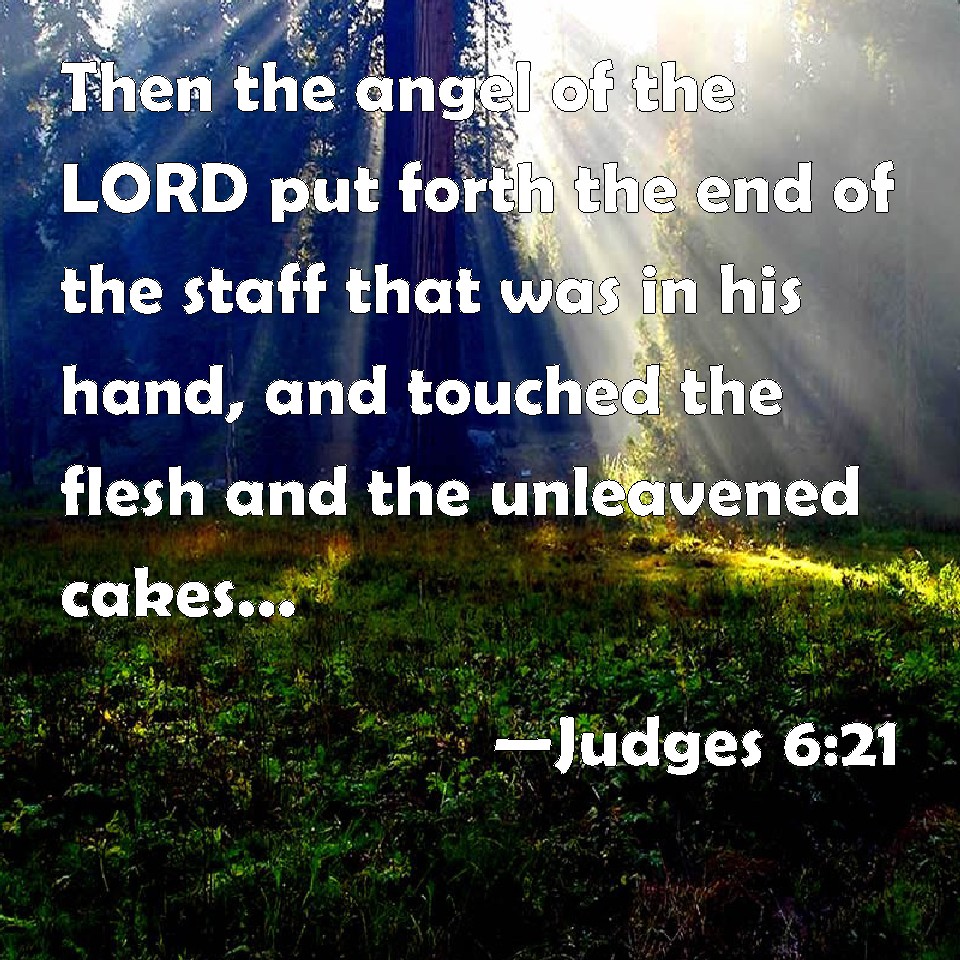 Judges 6:21 Then the angel of the LORD put forth the end of the staff that was in his hand, and touched the flesh and the unleavened cakes; and there rose up fire out of the rock, and consumed the flesh and the unleavened cakes. Then the angel of the LORD departed out of his sight.